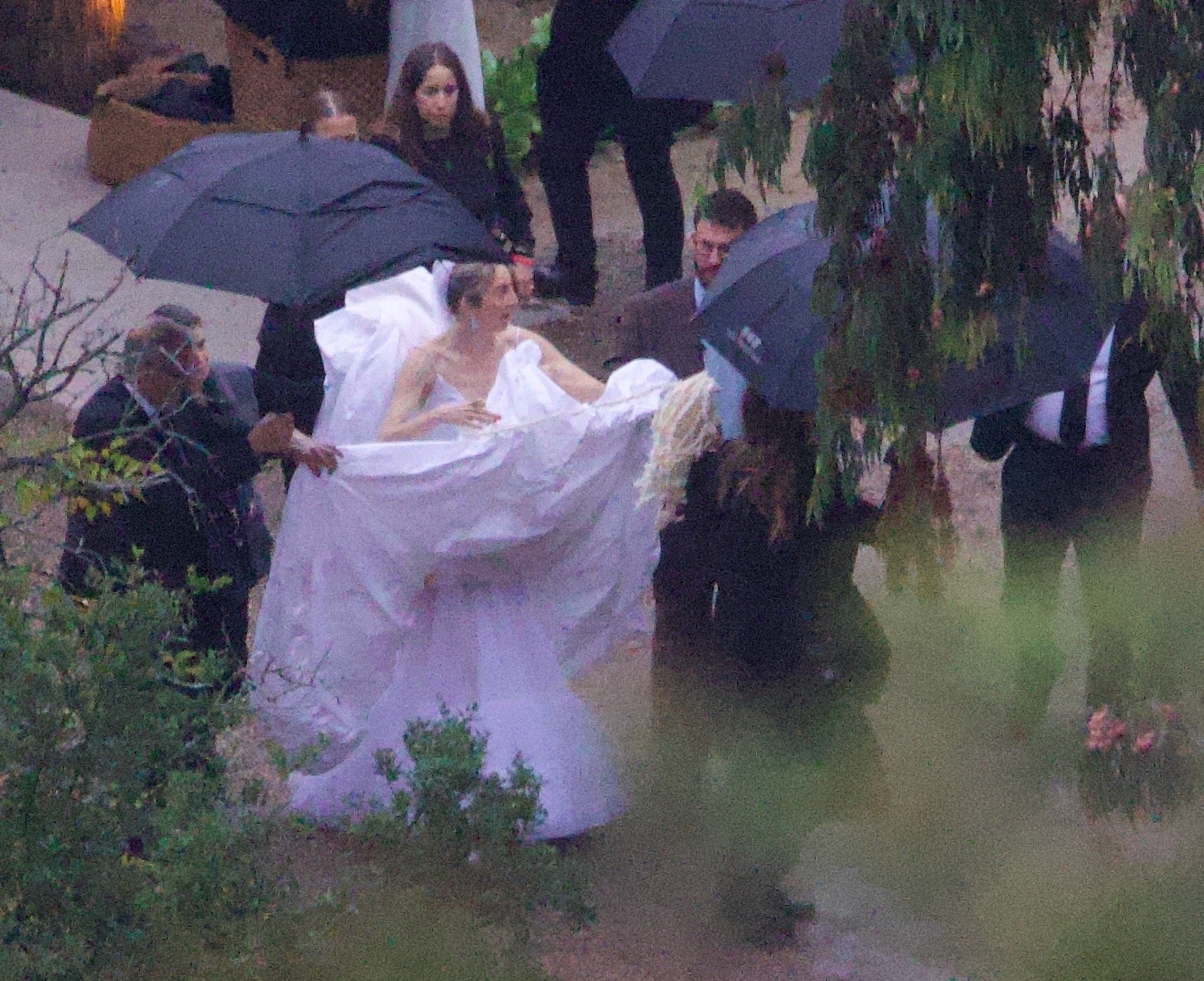 Then came the weather. Torrential rain poured down all day, forcing the couple to pivot at the last minute. What had been planned as a sunset ceremony became a quick-thinking production feat: a marquee tent was added on the fly to protect guests and the ceremony. The wedding began around 3:30 p.m., with Swift seen leaving the tent roughly an hour later, around 4:30 p.m. In a rare twist, there was a brief five-minute window where the rain actually stopped, a small miracle that didn’t go unnoticed by attendees.