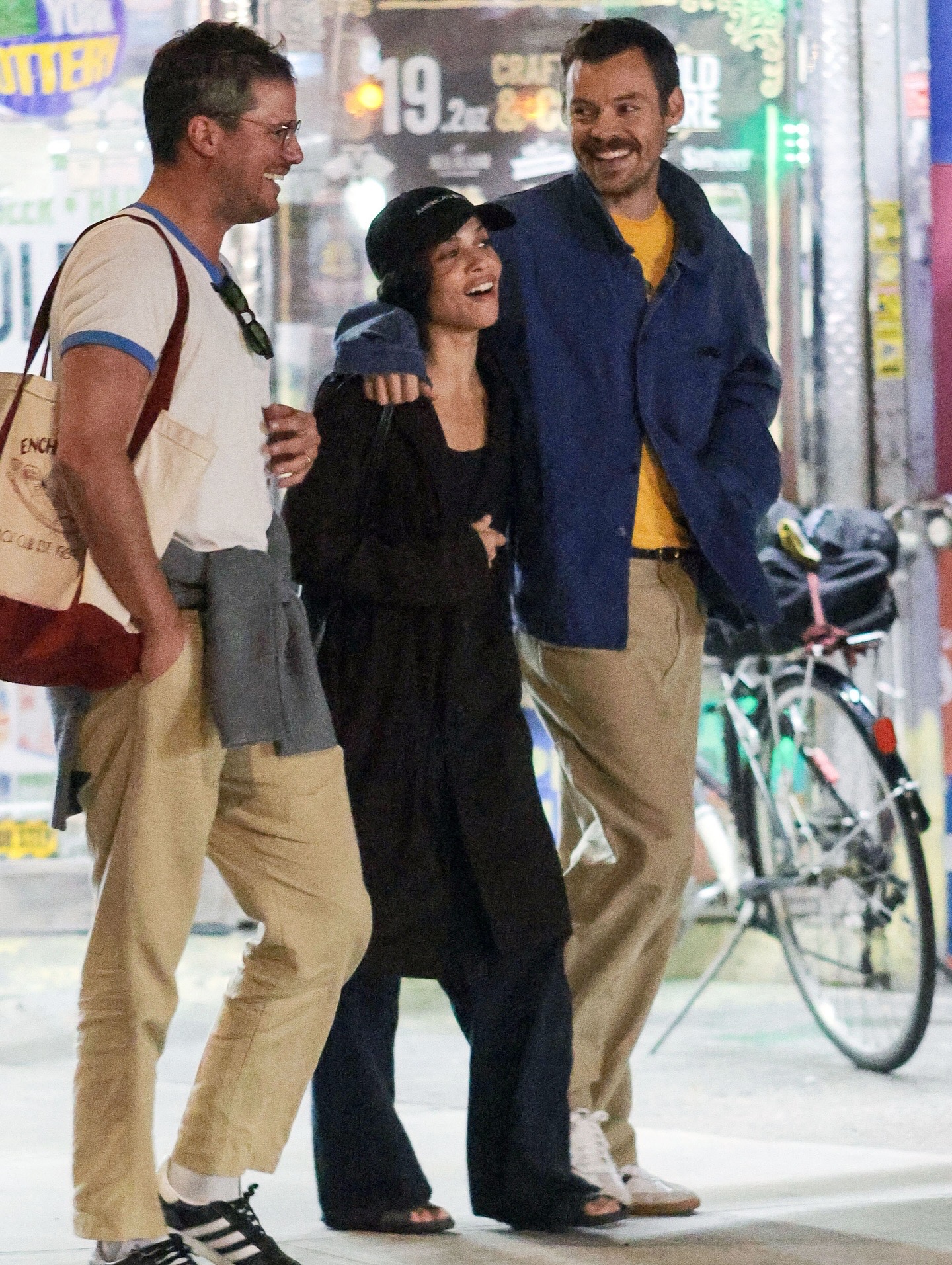 From outings in Manhattan, Brooklyn, and Queens, Styles and Kravitz are not hiding their feelings in New York’s boroughs--including flying out of JFK together. Since their whirlwind romance began, they have done coffee dates, over-the-shoulder sidewalk snuggles, and tender strolls. Kravitz has even worn Styles’s iconic, long-time favorite blue jacket from The Row. Additionally, a source supposedly “saw Styles, Kravitz, and Cara Delevingne at H0L0 in Queens. They were super low key and [kept] to themselves.” And clubbing isn’t their only night-time activity of choice. Just this week, a Deuxmoi insider captured exclusive footage of the seemingly inseparable couple at Art, James Corden’s new Broadway musical (co-starring Neil Patrick Harris and Bobby Cannavale).