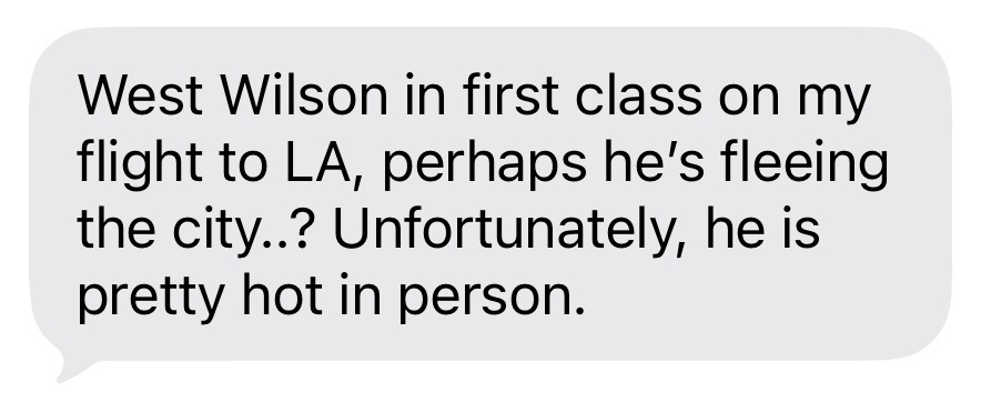 On March 5, Deuxmoi broke the news that Amanda Batula and West Wilson are allegedly romantically involved. Since then, social media has been working overtime, dissecting their every past interaction. This past weekend, Deux/U’s very own Hanna spotted West Wilson on a flight to Los Angeles. Separately, a source claims to have seen both West and Amanda dining at Rothschild’s in Corona del Mar with a group of friends, though no photographic evidence has surfaced. Prior intel suggested Amanda would be on the West Coast, but without photo proof, it remains unconfirmed. For now, the duo may simply be taking solace out west, while speculation continues.